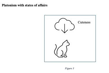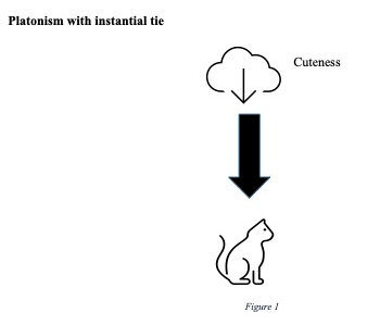 The three forms of Platonism vary in how they understand the instantiation relation. The first variant borrows a strategy from the ostrich nominalist, by refusing to offer any deeper explanation of the fact that Egbert instantiates cuteness. We can call such a position that of “ostrich Platonism”. The next variant introduces a new kind of entity, an instantial tie. Egbert instantiates Cuteness because an instantial tie connects it to the cuteness universal. The third variant of Platonism introduces instead a composite entity called a state of affairs. On this account, Egbert instantiates cuteness by virtue of belonging to a state of affairs that contains both Egbert and the cuteness universal.